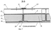 Кольцевые элементы 2 образованы двумя полукольцами двутаврового поперечного сечения. Нижняя полка 11 кольцевого элемента согнута из стальной полосы с размерами сечения 2×20 мм в виде полукольца с радиусом, соответствующим наружной поверхности обечайки резервуара. Верхняя полка 9 кольцевого элемента изготавливается из стальной полосы с размерами поперечного сечения 0,8×80 мм. Верхняя полка установлена концентрически на нижней с равномерным зазором, равным проектной толщине термостойкого теплоизолирующего слоя. Соединение нижней и верхней полок кольцевого элемента между собой и, таким образом, формирование единого двутаврового полукольца осуществляется при помощи шпилек 10 диаметром 03 мм. Шпильки 10 ориентированы с наклоном относительно радиуса кольцевого элемента. В верхней полке полукольца кольцевого элемента имеются четыре углубления с двумя пазами для установки и закрепления продольных элементов. Величина углубления 10 мм, что исключает возвышение поверхности продольного элемента над наружным габаритом кольцевого элемента. Шпильки установлены попарно в области углублений под продольные элементы с зеркальной ориентацией, что обеспечивает жесткость кольцевого элемента при сдвиге в тангенциальном направлении. Кроме того, имеются две шпильки, расположенные в зонах соединения полуколец (у обоих концов верхней полки), расположение которых также зеркальное.