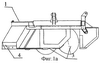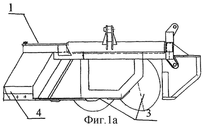 На фиг.1а показано устройство, вид сбоку; на фиг.1б – то же, вид спереди: на фиг.1в – то же, вид сверху; на фиг.2 изображено поперечное сечение минерализованной полосы; на фиг.3 – то же при наличии пропуска.