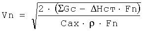 Откуда для потребной скорости потока Vn получим: