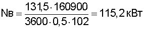 Нрп=131,5 кгс/м2, Qпв=160900 м3/ч, КПД вентилятора в 0,5, число оборотов вала вентилятора nв=600 об/мин (см. в кн. С.А.Рысин. «Вентиляторные установки машиностроительных заводов» Справочник, 2-е издание, ГНТИМА, М., 1961, стр.444).