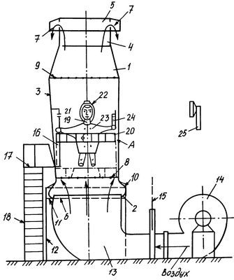 6. Способ по п.1, отличающийся тем, что воздушный поток в вертикальном сосуде регулируется величиной открытия шибера.