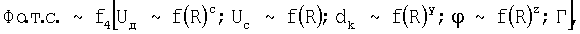 2. Определим слагаемые показателя степени «х», для плоскоцилиндрического ротора и радиальных потоков. Геометрическая составляющая, площадь проходного сечения (межтарелочного зазора) изменяется пропорционально радиусу, и соответственно, изменение легкой (сплошной) фазы т.е. FRif(R) или Wcf(R)