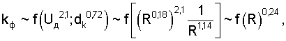 Известно, что коэффициент массопередачи kf(U2,1), принимаем U2,1Ri0,18, имеем kf(R0,378), тогда профиль получим в виде