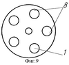 На фиг.9 и 10 – соответственно фильтрующие и дистанционирующие пластины, а на фиг.11 – взаимное расположение отверстий фильтрующих и дистанционирующих пластин по п.5 формулы изобретения, где 8 – отверстия фильтрующих пластин, 9 – участки отверстий фильтрующих пластин, неперекрываемые плоскостями дистанционирующих пластин.