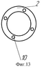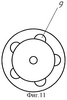 Фильтрующий колпачок по п.5 (минимизированный вариант), изображенный на фиг.8, представляет собой корпус 1 в виде штуцера, на верхнюю часть которого опирается пакет плоских поочередно набранных фильтрующих 2 и дистанционирующих 3 пластин. Фильтрующие пластины (фиг.9) выполнены в виде диска с набором произвольно расположенных отверстий, а дистанционирующие (фиг.10) – в виде круга с одним отверстием, соосным центральному, которое служит для крепления и стяжки пластин. На фиг.11 видно, что дистанционирующая пластина 3 не перекрывает отверстий 8 фильтрующей пластины 2 (открытые полости 9).
