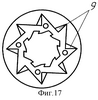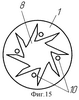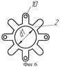 Дистанционирующие пластины (фиг.6) выполнены в виде звезды с радиально или тангенциально расположенными лучами и центральным отверстием d1, равным диаметру D корпуса. Расположение пластин относительно друг друга показывает, что внутренние отверстия фильтрующих пластин не перекрываются дистанционирующими пластинами (фиг.7) поз.9.