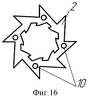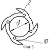 В соответствии с п.2 фильтрующие пластины (фиг.2) выполнены в виде круга с отверстием в форме звезды с прямыми лучами, а внутренний описывающий диаметр d равен диаметру D корпуса. Дистанционирующие пластины (фиг.3) выполнены в виде звезды с тангенциально или радиально расположенными лучами, а диаметр d1 центрального отверстия больше диаметра D корпуса на величину, равную, по крайней мере десяти толщинам дистанционирующей пластины.