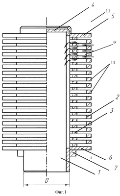 На фиг.8 изображен фильтрующий колпачок по п.5, где 1 – корпус, 2 – фильтрующие пластины, 3 – дистанционирующие пластины, 4 – крепежная шайба.