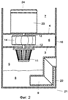 Также можно, чтобы часть 5 корпуса, содержащая водяной затвор, была разделена над водяным затвором 8 направляющим устройством по меньшей мере на две части, и чтобы воздухозаборный патрубок 9 был выполнен в виде отверстия через наружную стенку корпуса 2. Внутри воздухозаборный патрубок входит в обе нижние части. Для того чтобы воздух мог попадать из одной нижней части к другой, он должен проходить через водяной затвор 8.