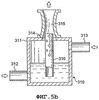Четвертый вариант изображен на фиг.5d. Это конструктивное выполнение подобно показанному на фиг.5c, но смеситель 330 преобразован. Он содержит сосуд 331 с входом 332 жидкости, входом 333 газа и выходом 334, ведущим к проходу 335 трубки Вентури. Имеется перфорированная труба 336, проходящая от выхода 334 обратно в сосуд 331. Как в конструктивном выполнении, показанном на фиг.5с, перфорированная труба 336 расположена так, что она не имеет зазора у выхода 334 сосуда 331 для прохода смеси газов через него. Все текучие среды должны проходить через перфорированную трубу 336 к проходу 335 трубки Вентури.
