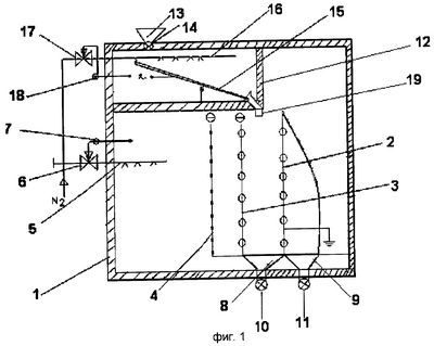 Криоразделение осуществляется в камере 1 при температуре выше, чем температура трибоэлектризации диспергированного (измельченного) сырья в криокамере 12.