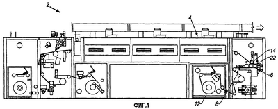 На фиг.1 элементы настоящего изобретения показаны в устройстве (2) для нанесения раствора на субстрат. Показанное устройство представляет собой модель ТМ-МС3 устройства, производимого Hirano Tecseed Co., Ltd (Nara, Japan), приспособленного для использования с настоящим изобретением. Предпочтительно, оно включает признаки, относящиеся к сушке в секции сушки (4), которые описаны в заявке на патент США, озаглавленной “Устройство для сушки раствора”, принадлежащей авторам настоящего изобретения и поданной с одной датой с настоящей заявкой.