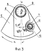 Совершив около 3/4 оборота зафиксированный дебаланс 5 своим упором входит в выемку на подвижном дебалансе, и далее происходит цикл, рассмотренный выше. Для смягчения ударных нагрузок упор 7 снабжен амортизирующим элементом 10.