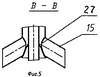 На фиг.4 показано относительное расположение выходных патрубков 15 наружной трубы и крепление 23 насадки 16 к внутренней трубе, а также моечная головка 20. На фиг.5 показан рассекатель воздуха 27, который является экраном, направляющим воздушный поток в патрубки 15.