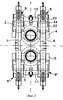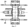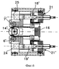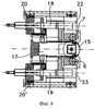 Станина также содержит два валка 14, 15 с вертикальной осью, более хорошо показанные особенно на фиг.4 и 5. Они смонтированы также на соответствующих клиньях 16, 17, которые распределены по одному для каждого валка. Вслед за каждым вертикальным валком размещены две соответствующие соединительные тяги 18, 18 , 19, 19 , которые также не поворачиваются вокруг их собственной оси. На каждой из соединительных тяг 18, 18 , 19, 19 установлен соответствующий силовой приводной гидравлический цилиндр 20, 20 , 21, 21 такого же типа, как те, которые используются на соединительных тягах горизонтальных валков.