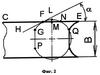 При вырубке заготовки справа образуются два удаляемых отхода NEQ (заштрихованы на фиг.3), а слева – две дуги FG двух, пока еще не удаляемых, отходов с острым углом а между касательной HF к окружности пуансона в точке F пересечения этой окружностью стороны ленты СЕ. Чем меньше угол , тем выше опасность того, что в процессе вырубки пуансон затянет острые края отходов в зазор между пуансоном и матрицей, что приведет к быстрому износу пуансона и матрицы и, как следствие, снижению точности вырубаемой заготовки. Поэтому на производстве надо стремиться к тому, чтобы угол и расстояние LM между фактической поверхностью пуансона и краем карточки были как можно большими.