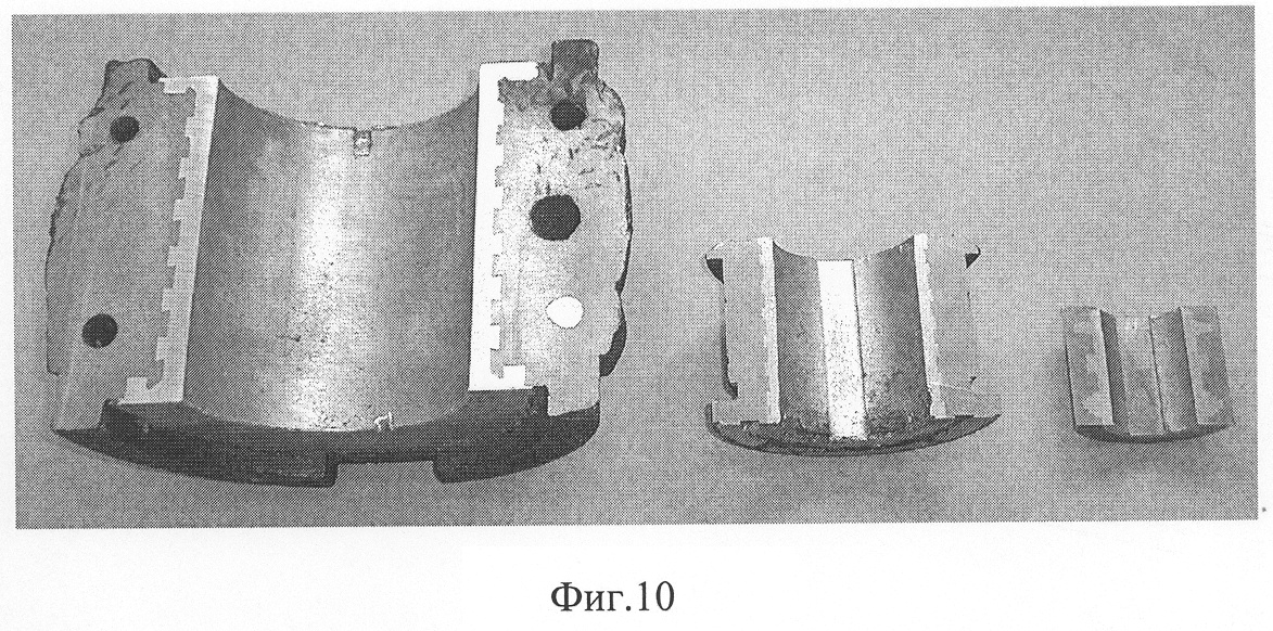 на фиг.10 представлена фотография подшипника скольжения, в котором антифрикционный слой получен по предлагаемому способу;