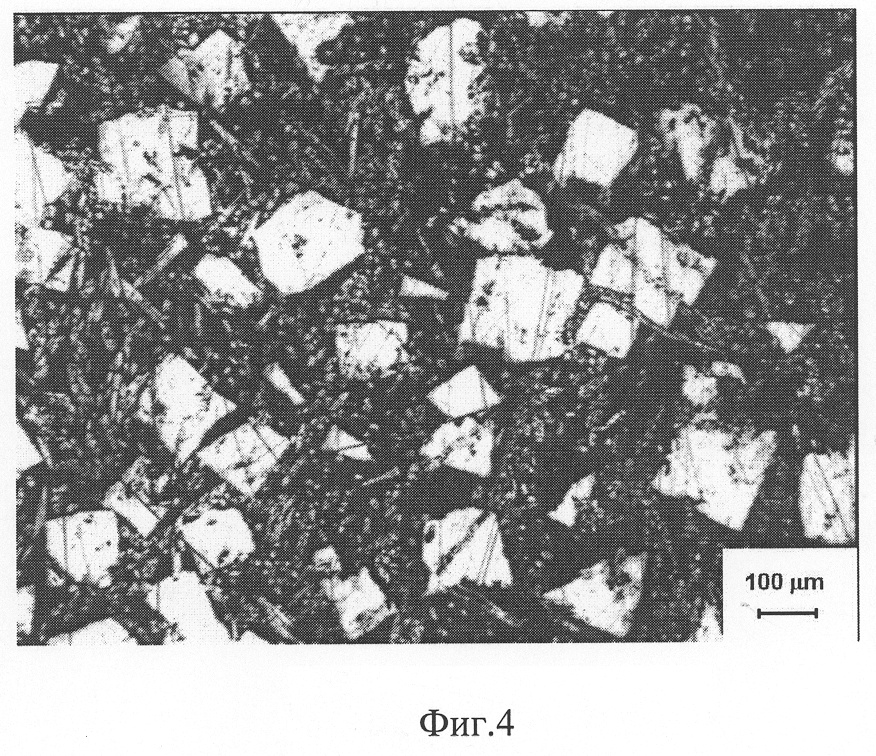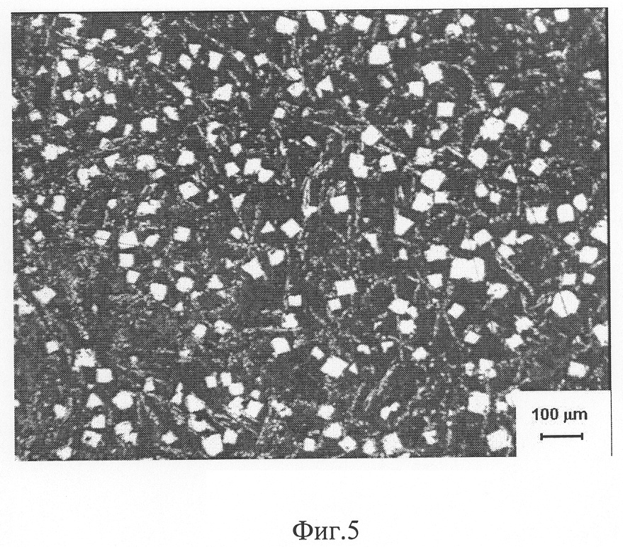 на фиг.4 представлена микроструктура слоя баббита, полученная при стационарной заливке и охлаждении подшипника на воздухе;