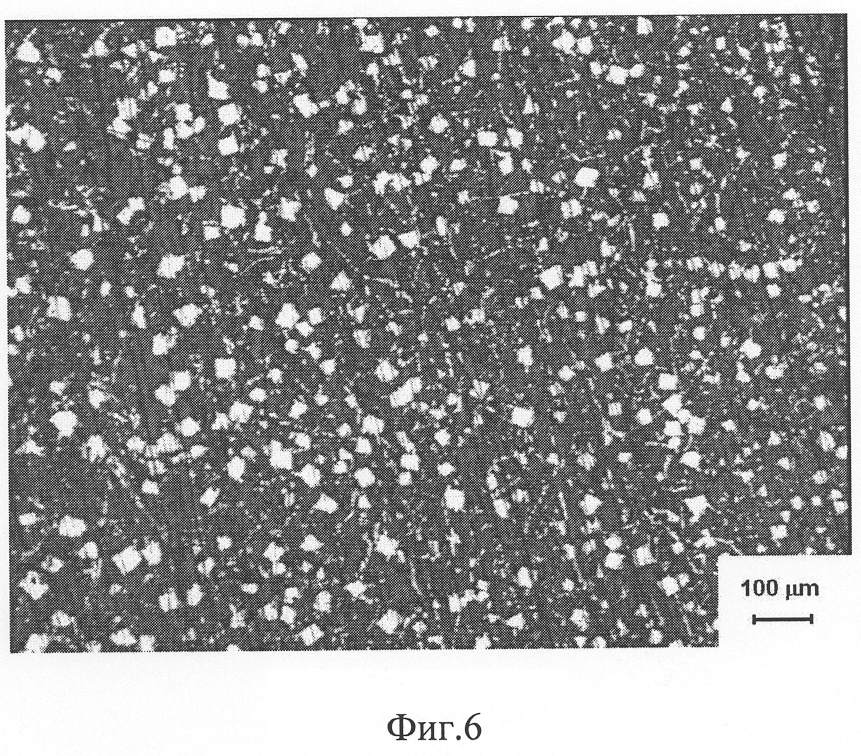 на фиг.6 представлена микроструктура слоя баббита, полученная при охлаждении пуансоном, имеющим комнатную температуру;