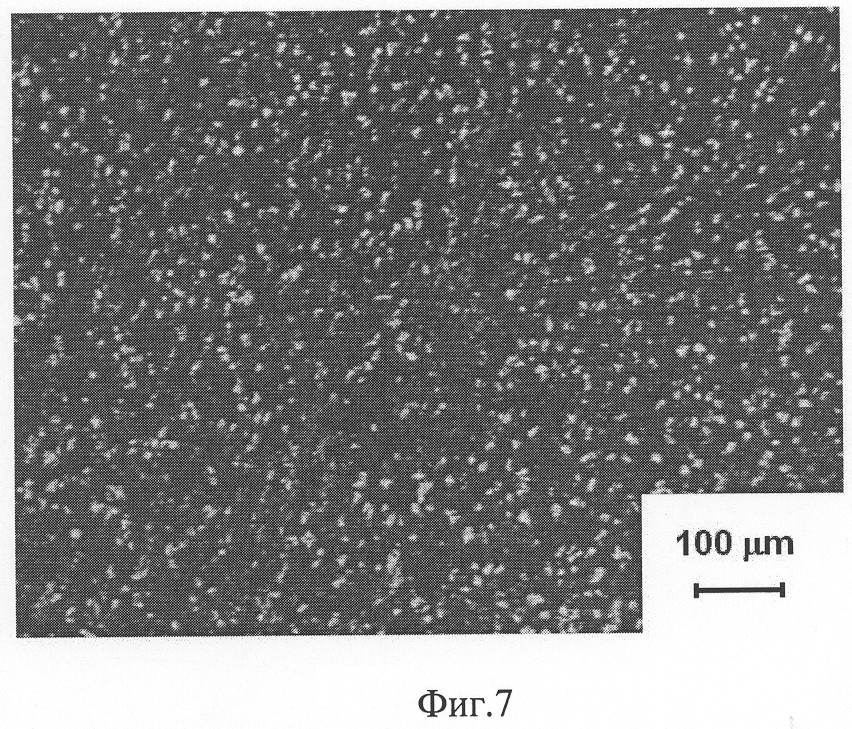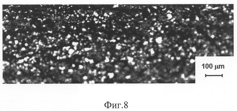 на фиг.7 представлена микроструктура слоя баббита, полученная при заливке баббита в приспособление, имеющее комнатную температуру;