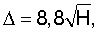 =2,0·H0,7, мм, а время осадки под током