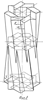 Способ изготовления декоративных изделий из древесины, заключающийся в том, что осуществляют изготовление заготовок, склеивание заготовок в блоки, выдержку блоков до затвердевания клея, отличающийся тем, что при изготовлении заготовок осуществляют пропилы заготовок для совмещения заготовок с образованием готового изделия, при этом при выполнении пропилов заготовки помещают в ложемент, ориентированный в соответствии с заданными установочными размерами: высотой центра симметрии сечения заготовки над плоскостью стола фрезерного станка, углом поворота продольной оси симметрии заготовки относительно плоскости стола и смещением центра симметрии сечения заготовки относительно вертикальной оси фрезы, а совмещение заготовок осуществляют в определенной последовательности, позволяющей собирать декоративные изделия, имеющие боковую поверхность наподобие гиперболоида вращения. Техническим результатом изобретения является получение готового изделия, имеющего боковую поверхность наподобие гиперболоида вращения. 6 ил.