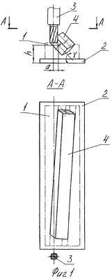 1 – ложемент, 2 – стол фрезерного станка, 3 – фреза, 4 – заготовка, h – высота центра симметрии сечения заготовки над плоскостью стола фрезерного станка, – угол поворота продольной оси симметрии заготовки относительно плоскости стола, – смещение центра симметрии сечения заготовки относительно вертикальной оси фрезы.