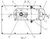 К внутренней поверхности корпуса 3 каретки крепятся кронштейны 16, к которым крепятся внутренние ролики 17, установленные на осях 18. Внутренние ролики 17 размещены вдоль торцевых сторон корпуса каретки и установлены по дугам окружностей, имеющих разные величины радиусов, но один центр, который совпадает с осью вращения O1 каретки 1. Ролики 17 катаются по плите 2 и служат для поддержки корпуса каретки 1 при воздействии на него различных нагрузок и облегчения ее поворота.