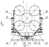 После того как агрегат с изделием прибудет на площадку, проводят работы по вертикальной установке изделия на базовых поверхностях стола (не показан). Для этого рама 1 своими кронштейнами 50 заходит за выступы платформы (не показана), находящейся на площадке, и перемещается относительно платформы до тех пор, пока цапфа 49 рамы не войдет в зацепление с крюком платформы. Рама сцеплена с платформой. Стяжками 23, 24, 40 фиксируют первый и второй балансиры и балансир 26.