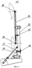 Каждая стойка 25 снабжена механизмом ее фиксации в рабочем (вертикальном) положении, выполненным в виде поворотного зажима 37 и упора 38, ввинченного в стойку. Зажим и упор охватывают с двух сторон пластину 39, закрепленную на раме 1.
