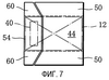 Как видно на Фиг. 4, клеевые области 38 образованы в части соответствующих верхних внутренних створок 64. Клеевые области 38 расположены согласно соответствующим концевым участкам внешней створки 26, которая образует верхнюю закрытую поверхность содержимого 12 (см. Фиг. 2).