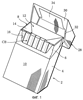 Фиг. 1 показывает вид в перспективе пачки с откидной крышкой в состоянии, когда ее крышка открыта;
