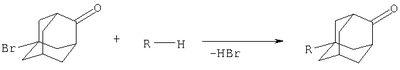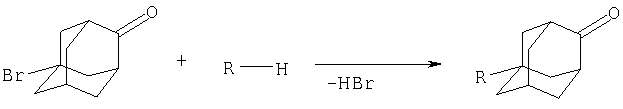 которые представляют собой важные полупродукты в синтезе вероятных биологически активных веществ. Например, в литературе приводятся сведения о свойствах лекарственного препарата «кемантан», применяемого как противопаркинсоническое, иммуностимулирующее средство. Кроме этого, известен препарат «бромантан» (4-бромфениламино-2-адамантан), использовавшийся в спортивной медицине [И.С.Морозов, В.И.Петров, С.А.Сергеева. Фармакология адамантанов. – Волгоград: Волгоградская медицинская академия, 2001, 320 с.]. Таким образом, введение функциональных групп в молекулу адамантанона-2 приводит к появлению актуальных видов биологической активности, отсутствующих у производных адамантана, замещенных в положение 1. В то же время описан ограниченный спектр реакций, приводящих к 1,4-дизамещенным адамантанам, содержащим кето-группу в положении 4. Сведения о методах получения соединений заявляемой формулы отсутствуют. Известен способ получения 1-гидрокси-4-оксоадамантана (препарата «кемантан») из адамантанона-2 путем его окисления смесью азотной и серной кислоты в течение 72 ч, причем выделение целевого продукта требует нейтрализации всего количества серно-азотнокислой среды щелочью (NaOH), что приводит к большим расходным коэффициентам как по кислотам и щелочи, так и по экстрагентам [Патент РФ №974757, МКИ 6 С 07 С 49/24, С 07 С 45/00, опубл. 27.09.1995]. Недостатком данного метода является то, что с его помощью можно получить только одно производное, а именно препарат «кемантан», а также большое время реакции и расход сырья. Известен способ получения 1-хлор-4-оксоадамантана, состоящий во взаимодействии 1-гидрокси-4-оксоадамантана с тионилхлоридом [J.Josef, В.Jiri, V.Ludek. Collekt. Czechosl. Chem. Commun. 1987, 52, 8, 2028-2034] или адамантанона-2 с помощью четыреххлористого углерода и солей марганца [Патент РФ №2197468, МКИ 7 С 07 С 49/483, С 07 С 45/63, опубл. 2003]. Данный метод также не приводит к получению веществ заявляемой структурной формулы. Данный метод также не приводит к получению веществ заявляемой структурной формулы. Кроме этого, среди недостатков этого метода можно отметить использование значительных количеств кислот и, следовательно, кислых стоков. Наиболее близким к предполагаемому изобретению является синтез 1-аминопроизводных адамантана, состоящий в высокотемпературном взаимодействии 1-бромадамантана с первичными и вторичными аминами, приводящем к целевым продуктам с выходами 45-70% [Степанов Ф.Н., Столяров З.Е. Адамантан и его производные. VIII. О взаимодействии 1-бромадамантана с аминами ЖОХ, 1969, т.5, №3, с.537-531]. Данный метод не приводит к получению веществ заявляемой структурной формулы. Кроме того, использование данного способа для получения соединений заявляемой структурной формулы невозможно, так как известны реакции кетонов со вторичными аминами [Органикум. Практикум по органической химии. М: Мир, 1979. 453 с.], что привело бы в нашем случае к образованию веществ иного строения. Использование же 1-диалкиламиноадамантанов для синтеза 1-диалкиламино-4-оксоадамантанов методом окисления в сильнокислых средах невозможно в связи с большим числом побочных реакций (солеобразование, окисление аминогруппы и др.). Задачей предлагаемого изобретения является разработка технологичного малостадийного метода синтеза 1-диалкиламино-4-оксоадамантанов практически любого строения, протекающего с высоким выходо