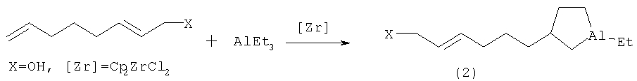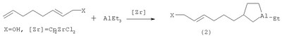 -олефинов с помощью Et3Al в присутствии Cp2ZrCl23) в присутствии катализатора цирконацендихлорида (Cp2ZrCl2) по схеме: