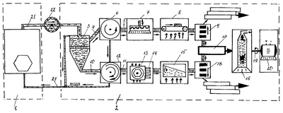 В данном способе и технологическом комплексе в конце двух параллельных линий все отходы, суммируясь, образуют прекрасное топливное сырье. Разъединение сырья в начале на две фракции и технологические линии, объединение отходов и разнообразной готовой продукции в конце этих линий при фасовке и пакетировании позволяет полностью использовать сырье, утилизировать отходы и реализовать безотходное и экологически безопасное многопрофильное производство.