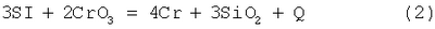 Изобретение относится к металлургии и может быть использовано при производстве нержавеющей стали дуплекс-процессом с выплавкой высокохромистого (более 9% хрома) железоуглеродистого полупродукта в электродуговой печи с последующим его рафинированием в агрегате аргонокислородного рафинирования. Известен способ снижения содержания хрома в шлаке при выплавке нержавеющей стали, когда стальной скрап и легирующие компоненты сплавляются в электродуговой печи с последующим выпуском в ковш, переливом стали из ковша в агрегат аргонокислородного рафинирования, где выполняется рафинировка и доводка стали путем добавления легирующих элементов. В этом способе для снижения содержания окислов хрома в шлаке в период времени между окончанием процесса плавления стали и шлака и выпуском расплава из печи в ковш в шлак добавляют ферросилиций в виде мелкоизмельченной фракции [1]. Недостатком данного способа является дороговизна материала – восстановителя хрома (ферросилиция). Другим недостатком является понижение основности шлака в связи с увеличением в шлаке оксида кремния и коррелирующим влиянием такого шлака на основную футеровку печи. Известен способ вспенивания хромистого шлака в высокомощной дуговой печи путем присадки в печь коксика или электродной крошки для восстановления хрома и снижения его содержания в шлаке с 21,2 до 13,5%. Присадка восстановителя производится в конце периода плавления после израсходования 85% электроэнергии [2]. Недостатком данного способа является сильное охлаждение шлака при протекании эндотермического процесса восстановления оксидов хрома углеродом [3], в результате чего фактическая температура шлака понижается быстрее, чем его температура плавления при уменьшении концентрации оксидов хрома в шлаке. Это удлиняет плавку, т.к. требуется дополнительно время на нагрев шлака. Данный способ принят за ближайший аналог. Задачей, на решение которой направлено данное изобретение, является полный слив шлака из печи посредством снижения его вязкости и температуры плавления, а также снижение продолжительности плавки. Поставленная задача решается тем, что предлагается способ выплавки полупродукта нержавеющей стали в дуговой электросталеплавильной печи, включающий расплавление стальных отходов и легирующих добавок, продувку металла кислородом, восстановление оксидов хрома из шлака путем присадки на поверхность шлака углеродсодержащих восстановителей в виде коксика или электродного боя и выпуск полупродукта со шлаком из печи, при этом восстановление оксидов хрома из шлака осуществляют кремнием ферросилиция, который присаживают после ввода углеродсодержащих восстановителей при достижения содержания оксидов хрома в шлаке 12…15% и вводят из расчета получения в печи шлака с содержанием оксидов хрома не более 5…10%. Для восстановления 1% оксидов хрома из шлака расход ферросилиция составляет 4…5 кг/т, а ферросилиций используют фракцией 19-20 мм. Для восстановления оксидов хрома из шлака в процессе плавления и продувки кислорода используется углеродсодержащий восстановитель, при этом он вводится в металл в виде кусков фракцией 10…15 мм или вдувается потоками инертного газа, например, аргона или азота в мелкоизмельченном виде фракцией 0…5 мм. Ввод ферросилиция в шлак при содержании оксидов хрома 12…15% обусл