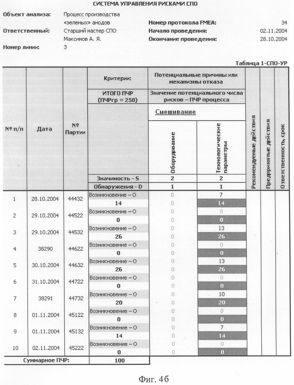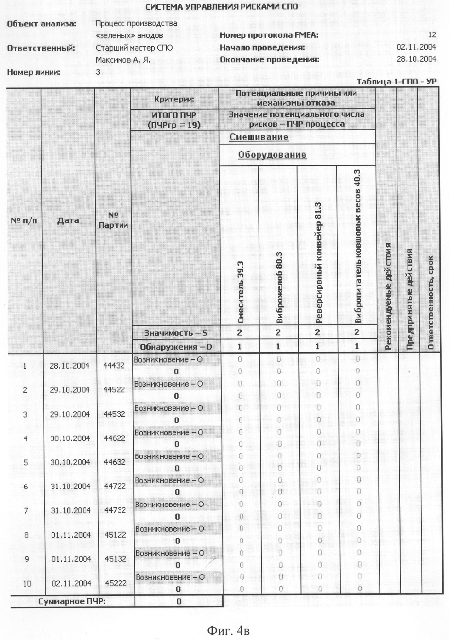 6. Автоматически формируются ежесуточно отчеты для системы управления рисками технологических процессов (фиг.4а, б, в, г).
