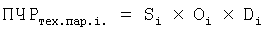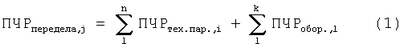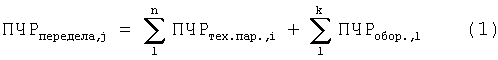 Комплексное ПЧР технологического процесса производства электродной продукции равно сумме ПЧР переделов. ПЧР для каждого j-того передела (ПЧРпередела.j) определяется как сумма ПЧР входящих в него технологических параметров (ПЧРтех.пар.i) и оборудования (ПЧРобор.l) по формуле: