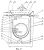 13. Стиральная машина по п.1 или 2, отличающаяся тем, что верхняя часть передней стенки ее корпуса имеет выступ, выполненный с возможностью охвата раковины умывальника.