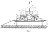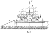 Основное колесо 17 транспортного средства выполнено без реборд и передает на рельсовый блок вертикальные воздействия Р. Направляющие ролики 18 имеют гребни безопасности 19. Подрельсовая подкладка 5 соединена со шпалами 20 болтами 21 [5, с.42], 22 – стыки эксцентриков 14.