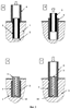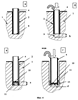 На фиг.1 изображена последовательность операций по установке свай в многолетнемерзлый грунт по способу 1; на фиг.2 – то же по способам 2 и 3; на фиг.3 – то же по способам 4, 5 и 6; на фиг.4 – то же по способам 7, 8 и 10.