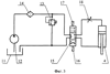 Скреперный агрегат (фиг.1) включает тягач 1, соединенный с ковшом 2, прицепным устройством 3. Под днищем ковша 2 установлен гидроцилиндр 4, управляющий положением ножей 5. На прицепном устройстве 3 установлен датчик (ДТУ) 6, регистрирующий силу тяги тягача 1. На тягаче 1 размещены датчики (ДСВ 1) 7 и (ДСВ 2) 8, фиксирующие его сцепной вес, датчик частоты вращения двигателя (ДОД) 9 и блок автоматизации 10 (фиг.2). На тягаче 1 также установлен гидробак 11 с гидронасосом 12, предохранительный клапан 13, фильтр 14 и гидрораспределитель управления 15 с электроуправлением от катушек заглубления 16 и выглубления 17 и регулируемый дроссель 18. На выходе блока автоматизации 10 (фиг.2) установлены исполнительные элементы в виде реле начала выглубления ножей (НВ) 19, реле окончания выглубления ножей (KB) 20, реле опускания ножей (ОН) 21 и реле ограничения частоты вращения двигателя (ОД) 22. Катушка заглубления 16 и выглубления 17 имеют источник питания 23 (фиг.4), катушки промежуточных реле заглубления 24 и выглубления 25, а также кнопки ручного выглубления 26 и заглубления 27 ножей 5. Реле опускания ножей (ОН) 21 имеет нормально разомкнутые 29 и нормально замкнутые 33 блок-контакты, реле начала выглубления (НВ) 19 имеет нормально разомкнутые 30 и нормально замкнутые 35 блок-контакты (фиг.4), реле окончания выглубления ножей (KB) 20 снабжено нормально замкнутыми блок-контактами 34, реле ограничения частоты вращения двигателя (ОД) 22 имеет нормально разомкнутые блок-контакты 32. Катушка промежуточного реле заглубления 24 имеет нормально открытые блок-контакты 28, а промежуточное реле выглубления 25 – нормально открытые 31 и нормально закрытые 36 блок-контакты. Скреперный агрегат работает следующим образом. При заглублении ковша 2 оператор включает блок автоматизации 10, сигналы от датчиков силы тяги (ДТУ) 6 и сцепного веса (ДСВ 2) 7 и (ДСВ 1) 8 и частоты вращения двигателя (ДОД) 9 поступают в блок автоматизации 10, где рассчитывается коэффициент буксования движителей тягача 1 по зависимости [4]: