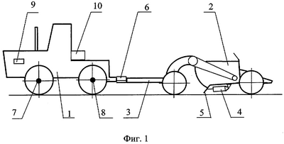 Известен прицепной скрепер [1], у которого прицепное устройство соединено с тягачом через гидроцилиндр, штоковая полость которого соединена с гидроцилиндром, изменяющим толщину срезаемой стружки. Такое устройство не обеспечивает оптимальный режим копания, так как не контролирует такие важные параметры процесса, как буксование ведущих колес тягача, частоту вращения двигателя и др. Кроме того, гидроцилиндр прицепного устройства постоянно нагружен полным тяговым усилием тягача.