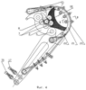 На фиг.7 показано предпочтительное выполнение рычага-рукоятки из термообработанных горяче- или холоднокатаных пластин, соединенных между собой посредством пальцев 4 (в сечение не попал) и 5, а также вертлюжков 15 тягового и страховочного канатов 16, 17.