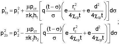 р1 и р2 – пластовые давления в пластах 1 и 2;