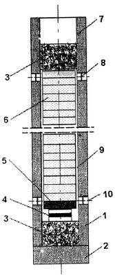 7. внутренние теплоизолирующие слои, отделяющие кабельный наконечник и днище от тепловыделяющих блоков.
