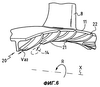 фиг.5 изображает на виде в направлении оси лопаточные профили для направления воздуха в кольцевой канавке,