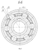 На фиг.3 – разрез Б-Б по телам качения в правых обоймах со смещенными рядами окон в водиле.
