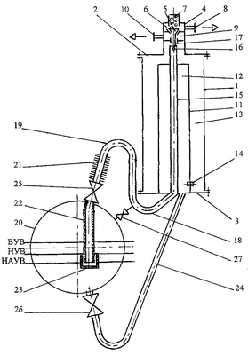 – недостаточная надежность срабатывания автомата, поскольку не исключается циркуляция котловой горячей воды в верхнюю часть сосуда через набор полых цилиндров при опускном движении холодной воды из сосуда в пароводяной барабан котла (наличие естественной циркуляции воды за счет разности плотностей при наличии разности температур). В этом случае набор полых цилиндров при близких значениях температур может не обеспечить срабатывание автомата при достижении предельного уровня воды в пароводяном барабане. Кроме того, наличие естественной циркуляции во всех элементах устройства увеличивает тепловые потери котла в окружающее пространство и снижает его КПД;