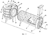 Также обеспечена возможность скольжения спиральных тел 33 в осевом направлении в соответствующих каналах 22, и с этой целью они снабжены соответствующей манипуляционной рукояткой 34, расположенной на осевом конце тела 33, обращенном к коллектору 23 для выпуска топочных газов. В коллекторе обеспечено кольцо с отверстиями 35, расположенное соосно с пучком 22 труб для возможности извлечения спиральных тел 33 из соответствующих каналов пучка и их введения в эти каналы.